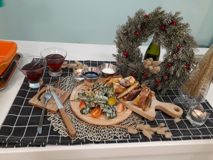 얼마 뒤면 크리스마스인데 정성 가득한 맛있는 브런치에 크리스마스 분위기의 장식으로 연출하여 동네 이웃이나 친구들 또는 가족들과 크리스마스 분위기를 내며 훈훈한 이야기 주고받으며 따뜻한 연말을 보내는 것도 좋을 것 같습니다.