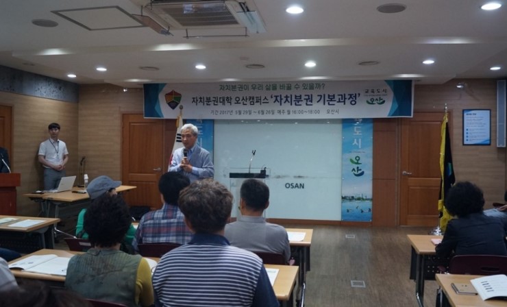 오산캠퍼스 자치분권 기본과정은 5월 29일부터 6월 26일까지 매주 월요일 오후 4시부터 6시까지 총 5강에 걸쳐 오산시 공무원과 시민 등 대상으로 무료로 진행된다.