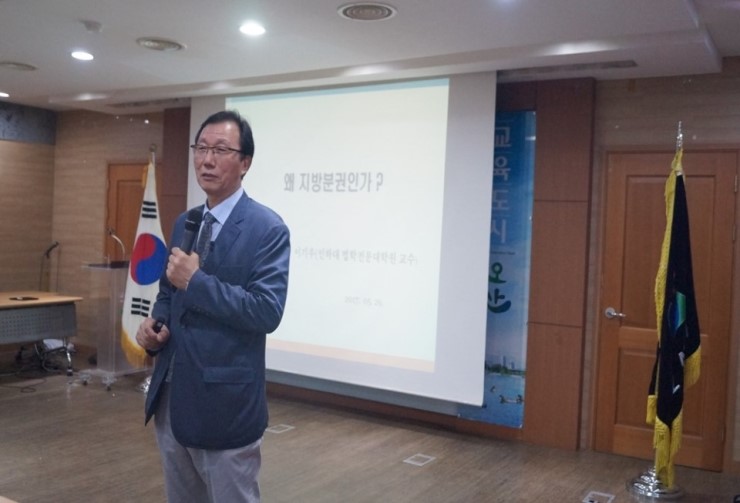 이날 첫 강의를 맡은 인하대학교 법학전문대학원 이기우 교수는 '왜 지방분권인가?' 라는 주제에 대해 강의하면서 "중앙집권은 지방자치를 마비시킨다"며 오뚝이 원리를 비유로 들었다. 오뚝이가 쓰러지지 않고 쓰러져도 바로 일어서는 이유는 무게중심이 밑에 있기 때문이며, 여기서 무게중심은 바로 권력이라고 말했다. 이 교수는 "중앙정부에 있는 제도를 개선하여 하부 조직인 지방자치에 무게중심이 있어야 정치 혼란을 예방할 수 있다"며 지방자치의 중요성을 강조했다.