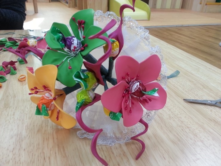 풍선과 사탕 철사를 이용하여 부케 형식의 꽃다발을 만드는 것입니다. 흔하게 접할 수 있는 간단한 재료들로 어떻게 꽃다발이 완성이 되는지 궁금했는데요. 시작이 반이라고 꽃 한 송이를 만드니 어느덧 작품이 되어갑니다. 시중에 흔히 볼 수 있는 꽃다발과 다르게 엄마의 정성이 들어간 꽃다발을 안겨준다면 정말 뿌듯하겠지요?