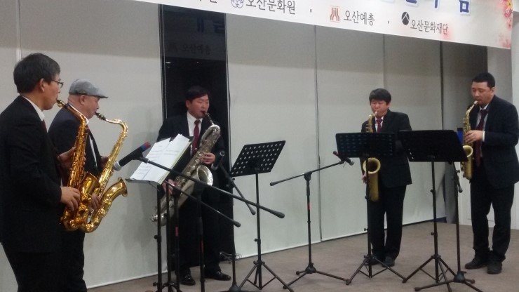 최창선 음악협회 지부장이 이끄는 클라즈 앙상블이 들려준 수준급의 섹소폰 연주, 윤민희 문인협회 고문의 '자화상' 시낭송은 예술인들의 마음을 훔치기에 충분했어요.