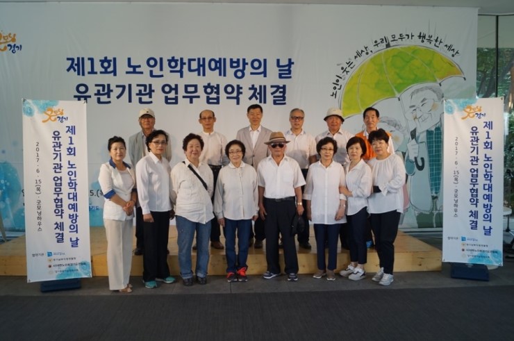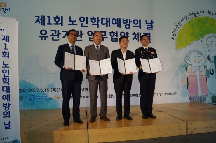 경기도[도지사 남경필]는 이달 15일 오전 노인복지과 관계자를 비롯하여 경기남부경찰청·대한노인회 경기도연합회·경기중앙 변호사회와 경기도 3개 노인보호 전문기관 관계자·도내 노인 상담 센터 관계자 등 200여 명이 참석한 가운데 수원 굿모닝 하우스[팔달구 팔달로]에서 '제1회 노인학대 예방의 날' 행사를 진행했다.