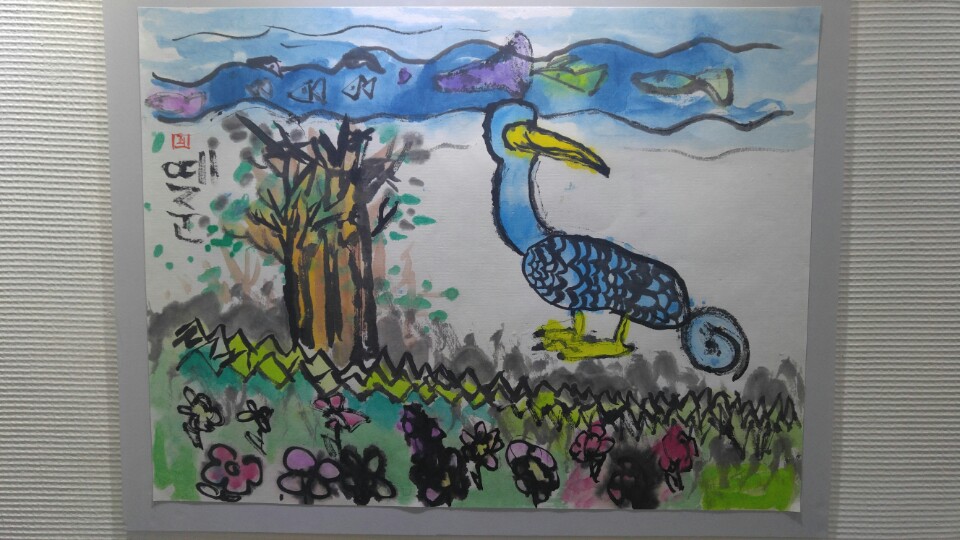 저는 우주인의 모습을 그린 꼬마예술가의 그림 앞에서 한참을 서 있었답니다. 오래오래전 과거부터 내려오는 수묵화기법에 미래의 모습을 담아낸 아이의 그림에서 영겁의 시간을 보았다고나 할까요? ㅎㅎ