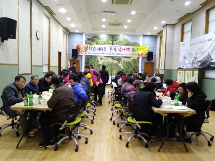 세마동(동장 신선교)은 지난 11월 24일 1년 동안의 풍성한 수확과 한 해를 마무리하는 추수감사제를 주민센터에서 지냈다.