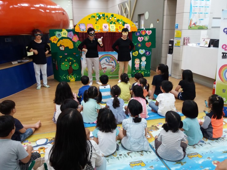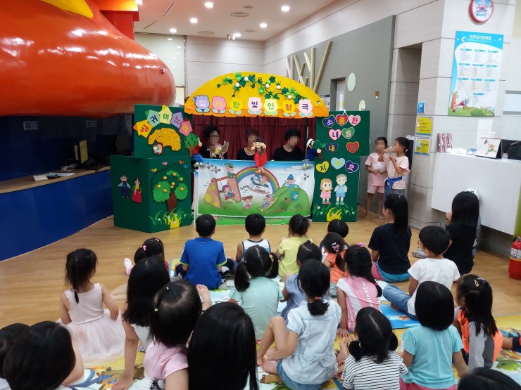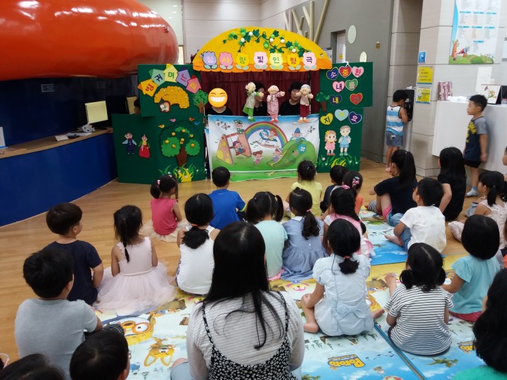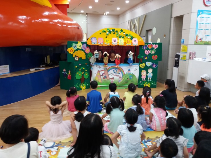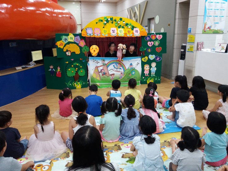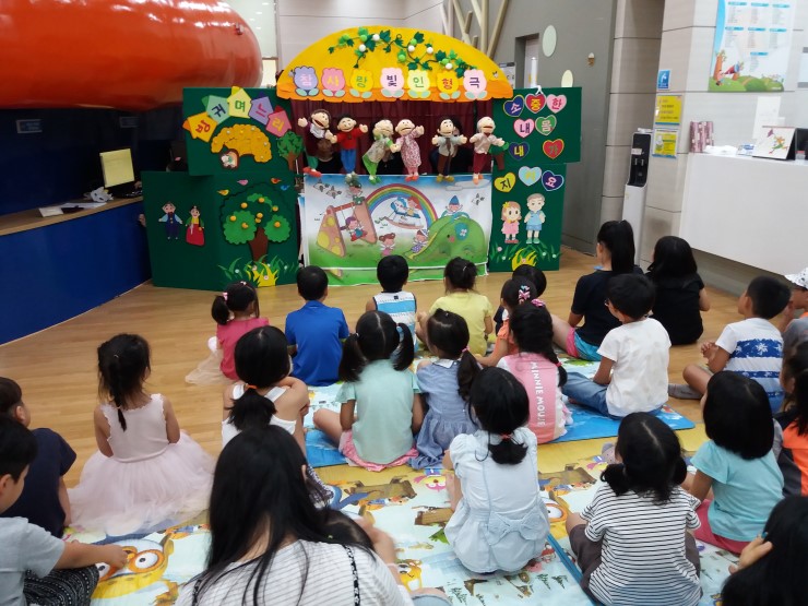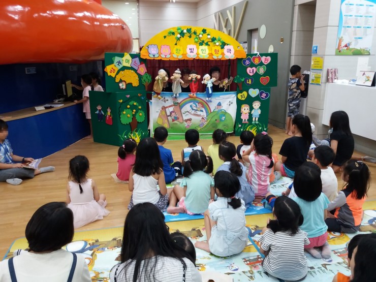 지난 화요일 중앙도서관 1층 어린이자료실에서 시니어 인형극단 ‘참사랑빛 인형극단’의 공연이 있었습니다. ‘참사랑빛 인형극단’은 어르신들께서 운영하고 계신, 인형극을 통해 인성교육을 하는 평생학습동아리입니다.