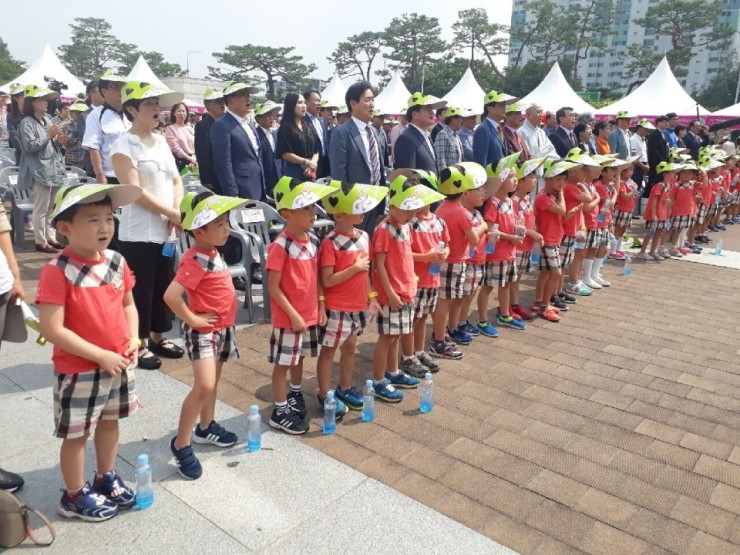 시립 한신어린이집 들꽃반 친구들이 어느 장소를 가든 선생님 말씀도 잘 듣고 질서도 잘 지키며 모범을 보여주어 기특하고 대견스러웠습니다. 이날 우리 아이들은 작열하는 태양에 쏟아지는 자외선과 싸우며 힘들어하지 않고 꿋꿋하게 행사에 집중하는 의전의 꽃이었답니다.