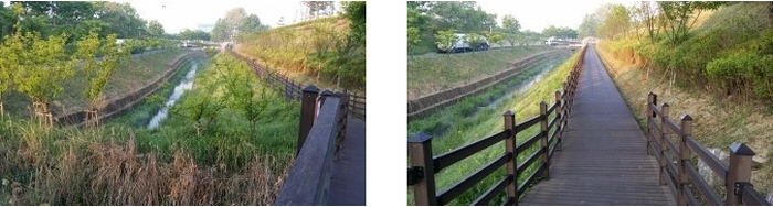 한참을 산책하다 내 눈에 들어 온 냇가의 산책로는 지나간 고요한 시간들을 생각하게 하였고, 황새교 옆 커다란 나무는 어린 시절 냇가에서 고기 잡고 물장구치며 놀던 시절들을 생각나게 하였다.