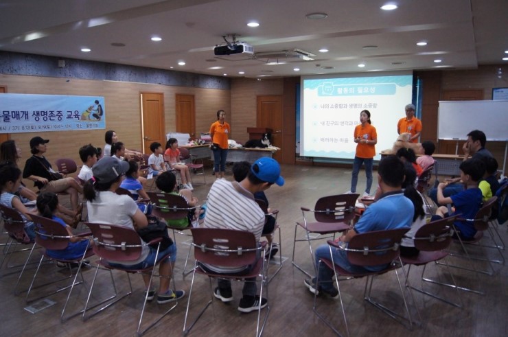 지난 8월 12일부터 19일까지 '여름방학 동물매개 생명존중 교육'을 오산시청 물향기실 2층에서 실시했다.