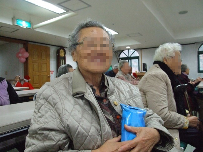 ▲ 아이들이 전해 준 선물을 가슴 꼭 안고. (한상순 할머님. 83세)