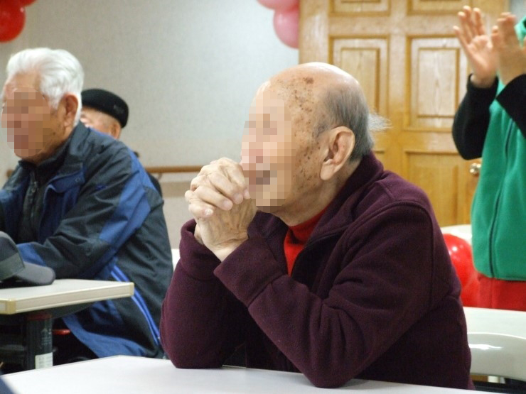 ▲ 아이들의 사랑의 목소리에 행복해 하시는 할머니, 할아버지