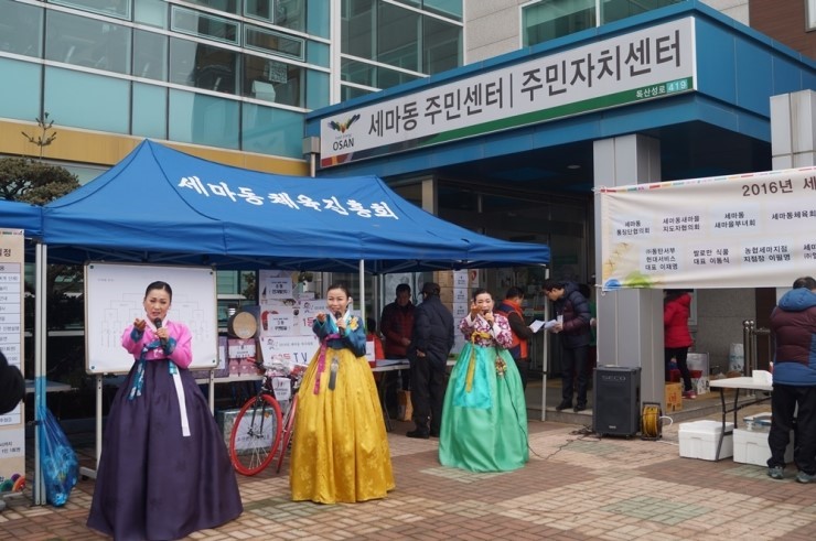 식전 행사로 민요가수들의 민요가락으로 대회장의 분위기를 뜨겁게 달구었으며 참석한 주민들은 민요가락에 맞추어 춤을 추었고 세마동 품물팀의 사물 놀이로 대회장의 분위기는 최고조에 다달았다.