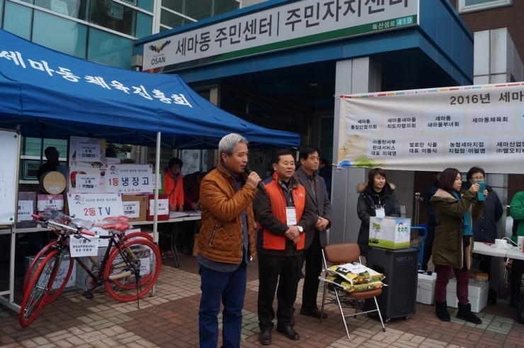 60여점의 경품 추첨도 있어 1등에는 최정인( 남 55)씨 가 행운의 TV를 가져갔고 윳놀이 1등에는 김젬마 (양산도 e 편한아파트) 씨가 대형 냉장고를 수상하는 행운을 가졌다. 이날 행사를 위해 세마동 주민 자치 위원들과 통장 협의회 회원들이 봉사의 손길을 펼쳤다. 행사를 마무리 하면서 김순본 동장은 행사를 위해 수고 하신 봉사자 와 직원들에게 감사의 인사를 했다.