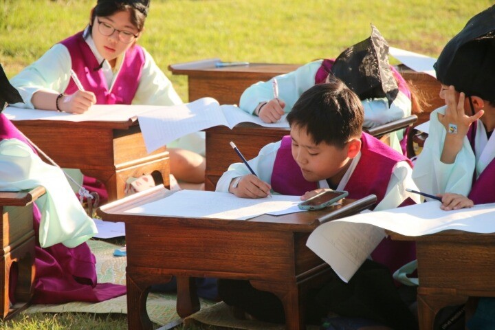 행단별시의 시제 <공자의 배움·꿈(삶의 계획), 정조의 꿈·효, 궐리사>가 발표되자 조선시대 유생이 된 것처럼 모두 진지하게 글쓰기에 집중하는 모습이다.