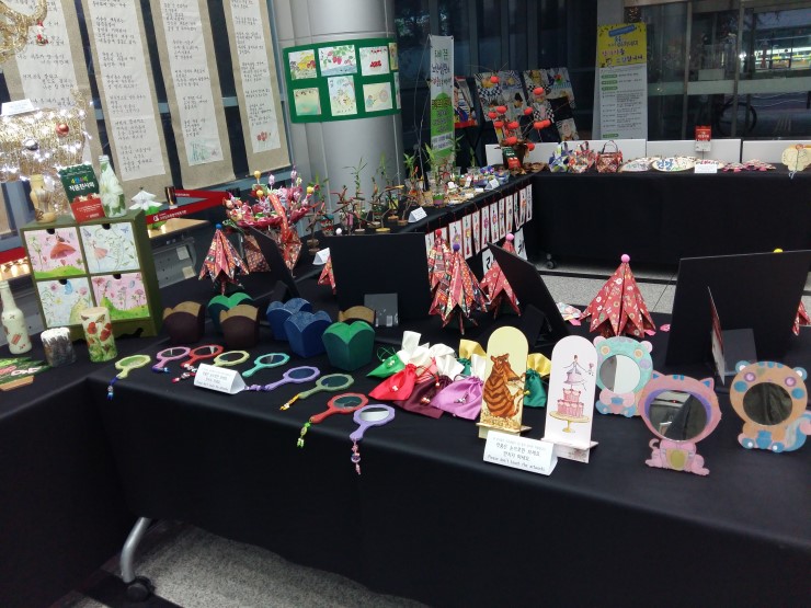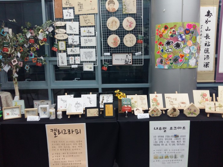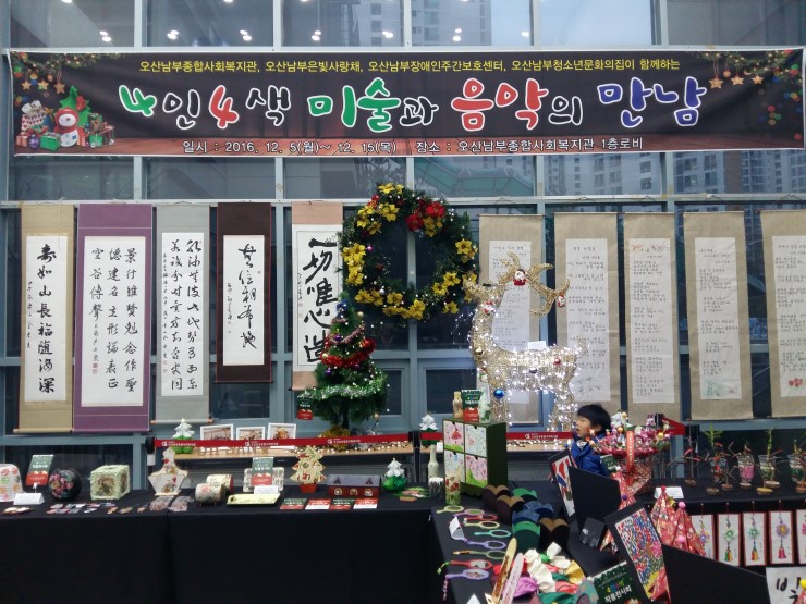 저는 평소 아이의 수업 때문에 오산남부종합사회복지관에 자주 가는 편입니다. 복지관에서 정기적으로 작은 전시회나 바자회가 열릴 때마다 아이와 구경하곤 했었습니다. 지난 월요일부터 전시된 4인4색 작품전시회에는 복지관 운영시설내 수강생들의 작품들을 전시됐습니다. 복지관의 교육문화프로그램 수강생들과 은빛사랑채, 장애인주간보호센터, 청소년문화의 집 수강생들의 작품들이 한 곳에 어우러져 있었습니다. 다양한 연령대 수강생들의 1년 동안 갈고 닦은 솜씨들이 작품 속에서 빛을 발했습니다.