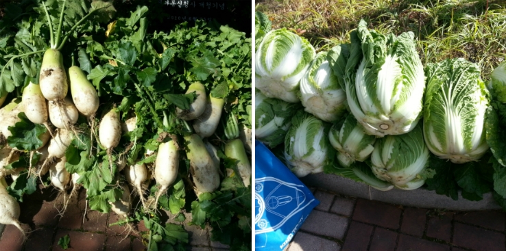 ▲ 새마을 부녀회원님이 직접 키우신 배추, 무는 보신는 것처럼 속이 꽉차고 크기도 크며 열무가 싱싱합니다.