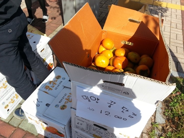 ▲ 양산동 늘푸른오스카빌 부녀회총무님의 밀양 단감 - 농약을 남들 두번 칠때 한번 쳐 모양은 자연스럽지만 당도 높고 품질 굿!