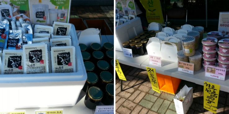 ▲ 양산동 콩박사네 순두부는 당일 아침 만들어 따끈하고 가격도 저렴하여 인기가 좋았답니다. 된장, 간장은 직접 농사지은 콩으로 만들어 3년을 숙성시킨 최상품으로 잔다리마을기업으로 납품하는 콩으로도 우수품질을 자랑합니다.