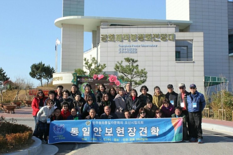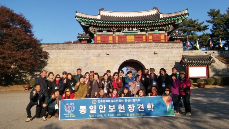 2016. 11. 9일 세마동, 신장동 통장단 31명과 민주평통오산 9명 총40명은 남북 분단의 현장인 DMZ일대를 견학, 통일을 대비하는 계기를 마련하는 통일안보 현장견학을 다녀왔다. 입구에서 검문을 통과할 땐 분단의 슬픔이 느껴진다.