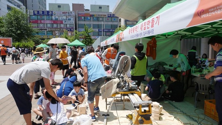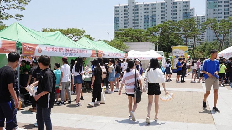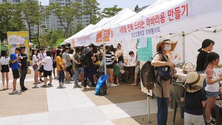 축제는 오산 청소년들에게 자원봉사 참여 기회를 제공하고 자원봉사를 활성화 시키기 위해 오산시자원봉사센터가 주관하여 진행되었습니다^^ ![]() 행사장에 들어가는 입구 쪽에는 운영본부가 있었는데요, 운영본부에서는 활동지와 부채를 나누어 주었습니다. 활동지에는 체험도장을 받을 수 있는 페이지도 있었는데요 체험도장을 받는 수량에 따라 자원봉사시간, 박람회 기념풍, 영화티켓을 받을 수 있는 기회도 주어졌습니다^^ ![]() ![]() 날씨가 많이 더워졌는데도 불구하고 많은 시민들과 청소년들이 참여했습니다. 같은 날 옆에서는 나눔장터도 열려서 더욱 많은 사람들로 붐비기도 했던 것 같네요. ![]() 또 입구 옆에는 체험횟수에 따라 주사위 게임을 통해 사은품을 받을 수 있는 게임도 준비되어서 체험해야 겠다는 마음을 더 불러일으켰던 것 같습니다. ![]() ![]() 다채로운 행사들이 참 많았습니다. 새집을 만드는 행사부터 승강기 안전 체험, 복불복게임, 네일아트, 퀴즈 등 총 20가지가 넘는 체험부스가 마련되었습니다. ![]() ![]() ![]() ![]() 사랑의 짜장차도 체험행사장에 나와 많은 분들이 점심시간에도 든든하게 체험행사에 참여 할 수 있었습니다^^ ![]() ![]() 또 공연장도 마련이 되어 참여하는 재미에 볼 재미도 더해졌습니다. 랩과 댄스로 청소년들의 끼를 볼 수 있었던 공연이었습니다~ ![]() ![]() ![]() |