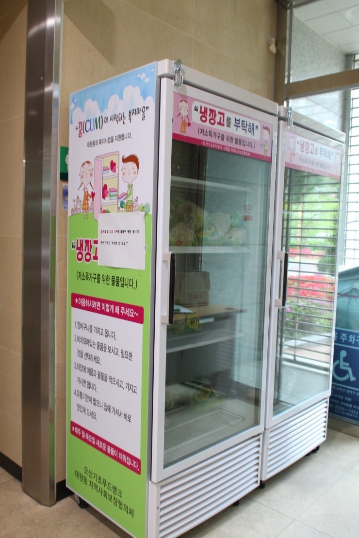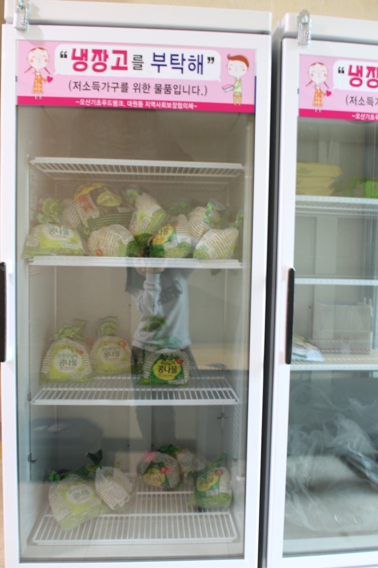 사용하지 않는 식자재나 유통기한이 거의 다된 음식들을 버리지 않고 기부하여 필요한 사람에게 나누어 주어 자원순환을 목적으로 한다. 오산시도 중앙동을 비롯하여 대원동 주민센터에서는 복지사업<냉장고를 부탁해>를 3월 21일부터 시행하여 주민센터 1층에 냉장고 2대를 설치했다.