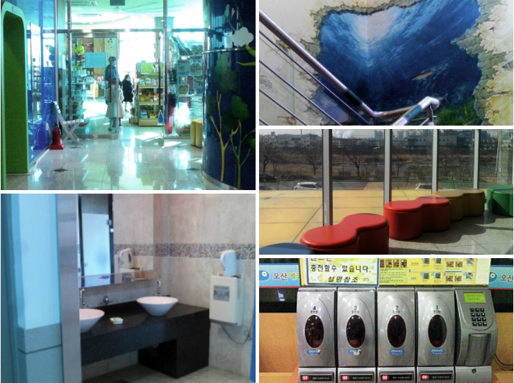 1층 입구에는 급속 휴대폰 충전기가 마련되어 있으며, 3층에는 컵라면, 과자, 음료등을 파는 매점이 있고, 각 층마다 화장실이 있어서 아이들과 함께 이용하기에 편리하다.