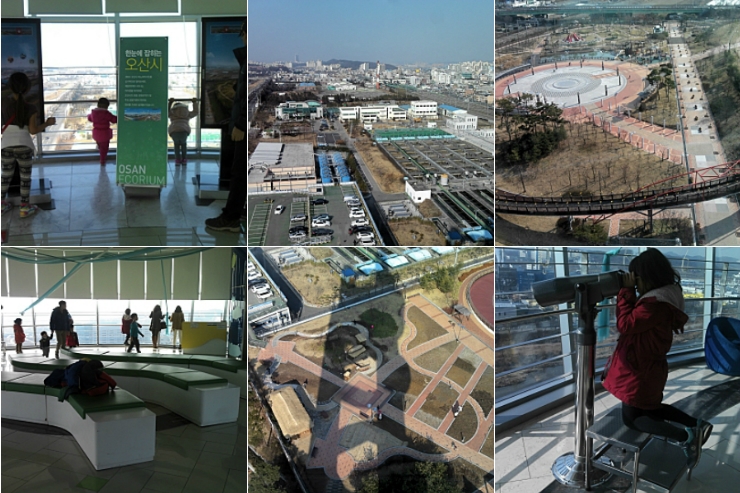 전망대에서 육안으로도 오산 시내 곳곳이 보이고, 설치된 망원경으로는 오산천에 떠있는 겨울 철새들도 볼 수 있다.