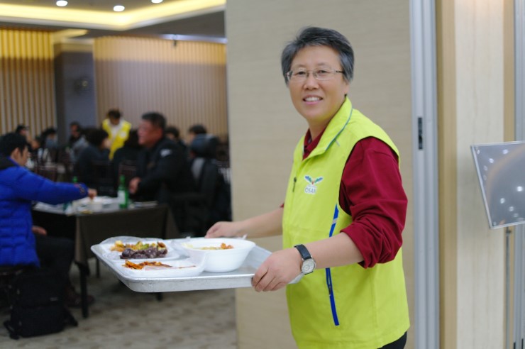 행사장에 찾아 온 손님들에게 손수 음식을 가져다 드리는 정경화 회장님이다. 한 사람 한 사람에게 마음을 담아 정성을 대접한다. 그 마음과 손길이 따뜻하게 그대로 전달되었다.