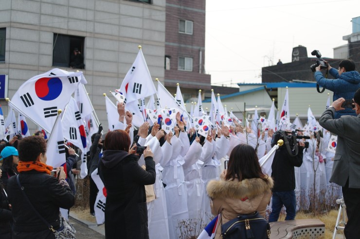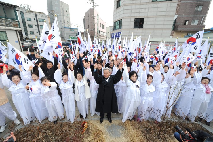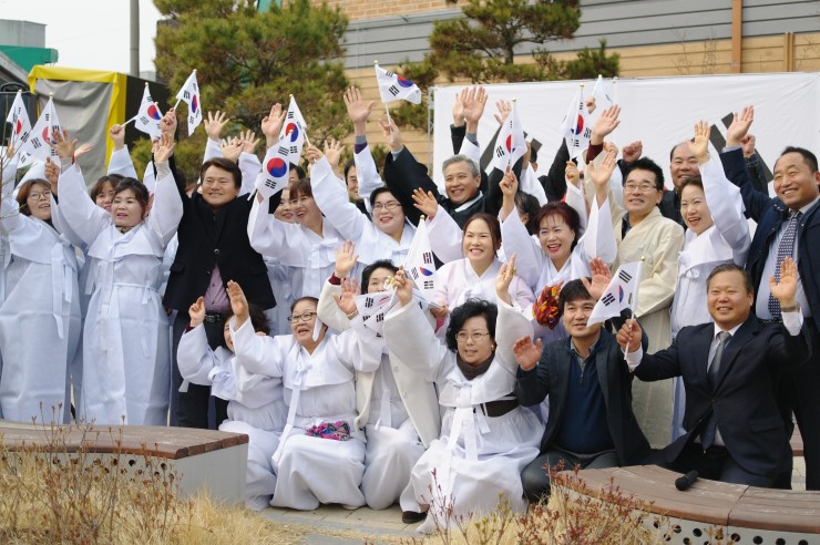 ▲ 만세 운동 재현 후 함께 참여한 분들과 기념 촬영 중이다. 98년 전 우리 민족의 간절한 소망이었던 조선의 독립. 일제에 비폭력으로 항거하며 일본과 맞서 싸운 우리 민족의 3.1운동 정신이 지금도 흐르고 있음을 보게 된다.