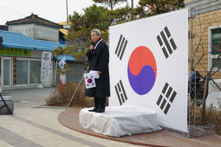 ▲ 기미 독립 선언문 낭독 (오매장터 주민위원회 부회장) 비장한 분위기가 장내를 숙연하게 하였다.