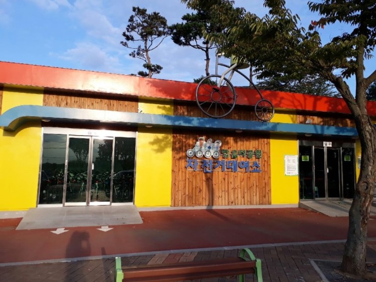 맑음터공원 입구에는 자전거 대여소가 있어