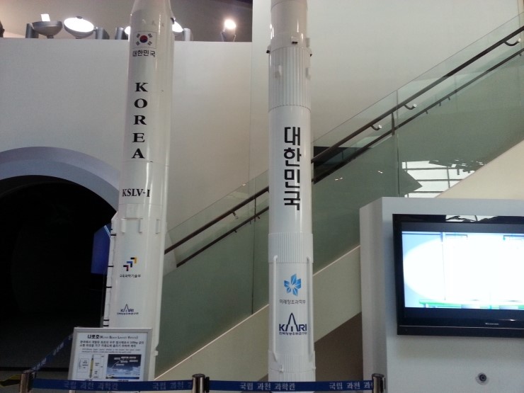 이곳은 첨단기술2관에 있는 대한민국 최초의 우주발사체인 나로호 모형이 전시된 곳입니다.