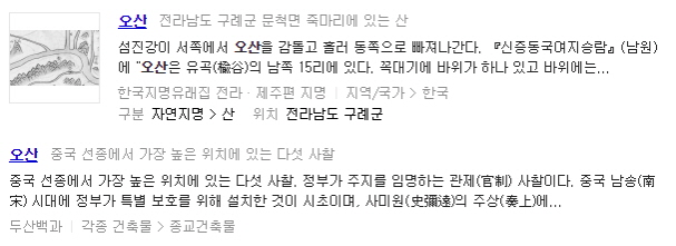 산(山) 명칭이 있지 않을까 생각했는데 딱 검색되네요. 섬진강 근처 500m 가 넘는 큰 규모를 자랑하고 있네요 ^^ 기회가 된다면 다음에 한 번 정상에 올라가보고 싶습니다. 그 뿐 아니라. 중국에 있는 사찰 이름도 오산의 이름을 사용하고 있다니 ! 오산시의 위엄 ^^