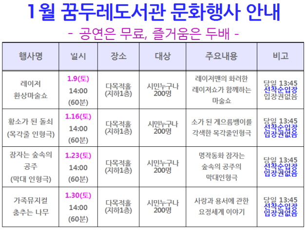 오산시 꿈두레도서관에서 진행하는 무료 문화공연은 무료라는 메리트도 크지만