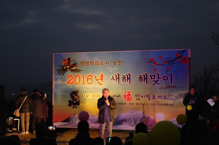 2016년 1월 1일 어스름이 채 가시기도 전인 새벽 미명에 평생학습 도시, 오산 시민들이 하나둘씩 모여들기 시작했다. 독산성 새해맞이 행사에 참여하기 위해서 모인 시민들은 새로 시작하는 2016년에 대한 기대와 설렘, 소망을 하나 둘씩 품고 올랐다. 독산성 입구에서 행사장까지 유모차에 아이를 싣고 부부와, 삼대가 함께 오르는 모습도 눈의 띄었다. 어린 아이에서부터 장년, 어르신에 이르기까지 많은 시민들이 함께 하였다. 독산성 해맞이 장소로 도착하여 보니 이미 이른 시간에 시민들이 많이 모여 있었다.
