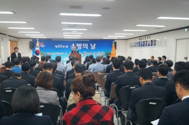 - 시민의 생명과 재산 119가 지킨다 - 오산소방서(서장 최영균)는 이달 9일 소방공무원과 의용소방대원, 소방가족 등 120여 명이 참석한 가운데 제55주년 소방의 날 기념식을 오산소방서 3층 대회의실에서 진행했다.