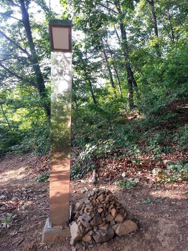 [야트막한 산책길을 안내해줄 불빛과 안전을 기원하는 돌무덤]