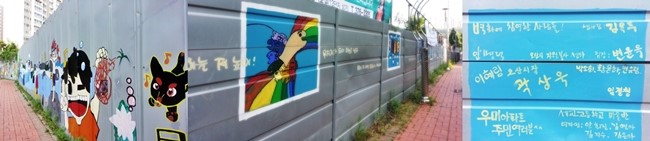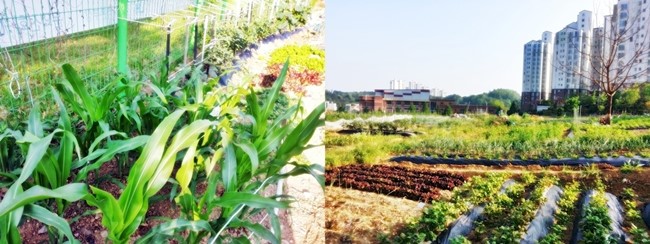 [벽화뒤로 새생명을 키우고 있던 텃밭]