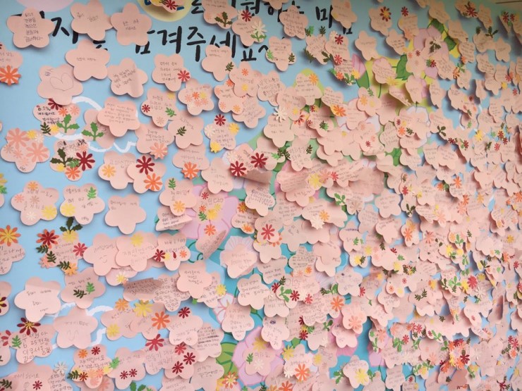 ▲ 이날 다양한 체험을 한 시민들의 소감이 무궁화 모양의 예쁜 포스트잇에 가득 붙어 있네요.