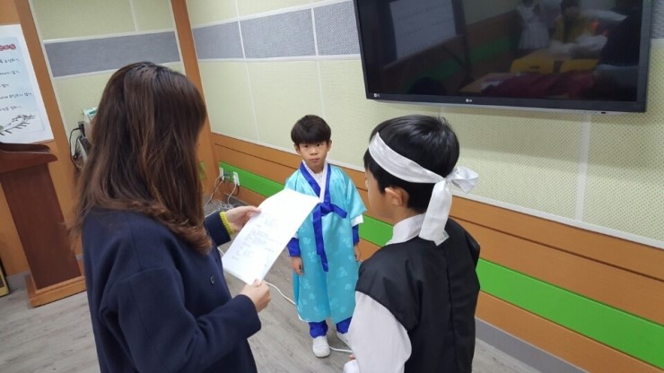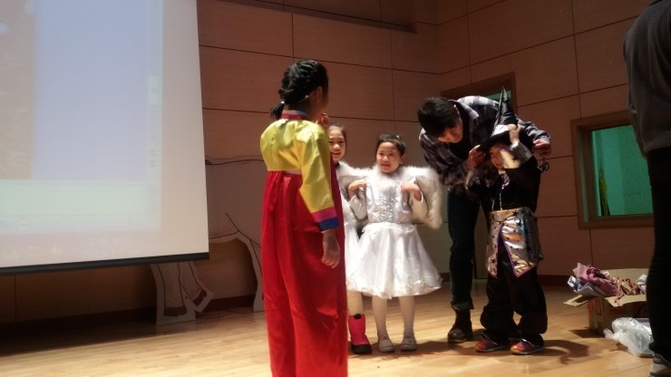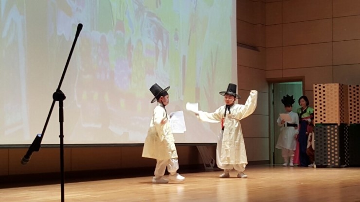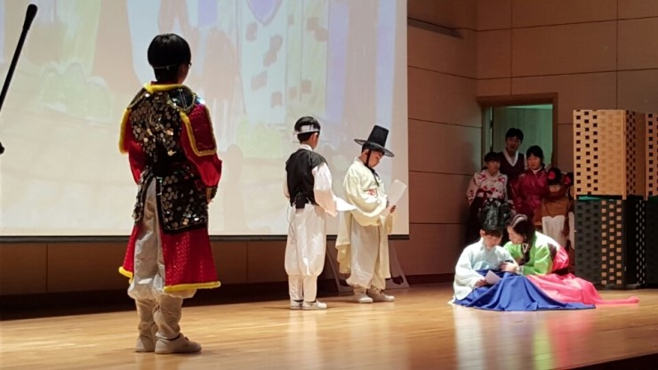 장군복을 멋지게 차려입은 권율역의 정인영 군(수청초5)은 “처음엔 엄마가 등을 떠밀어서 가게 됐는데 하길 잘 했다고 생각해요. 조금 떨리긴 했지만 마이크 사용하는 거랑 연극을 하는 것이 즐거웠어요. 더구나 평상시에는 누구랑 나누는 걸 못했는데 오늘은 제가 친구들한테 뭔가 줄 수 있었던 것 같아서 좋았어요” 라고 참여한 소감을 말하네요.