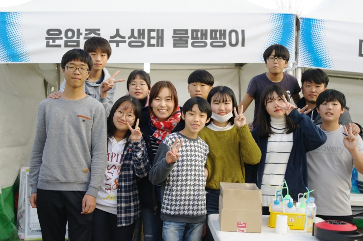 ▲ 운암중 물땡땡이 동아리 학생들과 이윤선 지도 선생님