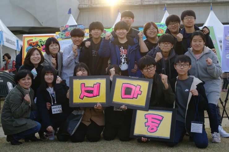 ▲ 박람회에 함께한 동아리 학생들 , 우리 오산의 재간둥이 과학 재능꾼이라 말하고 싶다.