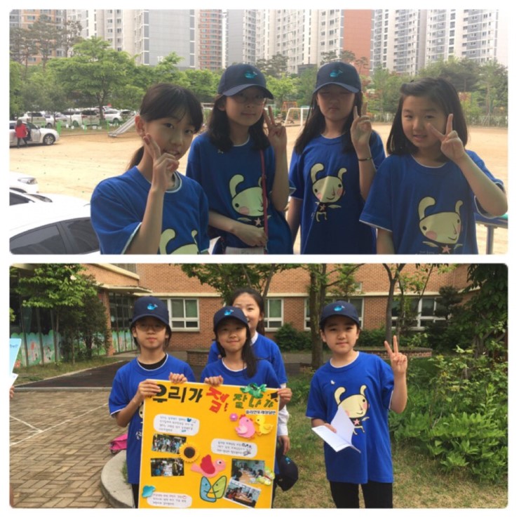 또래 상담 동아리 쏠리언 어린이들이 각자의 자리에서 맡은 역할을 하며 즐거운 마음으로 캠페인을 함께 하고 있어요^^