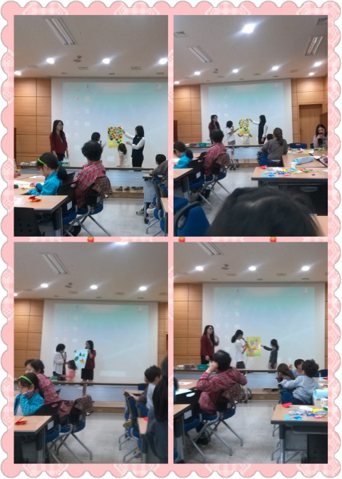 한팀씩 나와서 가족소개하고 도화지에 그린 나무그림에 대해 설명을 해봅니다. 보물가족이라고 소개한 한 가족은은 큰 아이를 보물1호로 '우리 보물 1호, 엄마 말 잘 들어줘서 고맙고 어린동생을 잘 돌봐줘서 고맙다. 그리고 앞으로 더 잘 부탁해' 보물2호한테는 '잔병치레가 많은데 건강하게 자라고 항상 자신감있는 아이로 자랐으면 해' 마지막으로 엄마의 소원을 말했는데요. '엄마는휴일은 늦게까지 자는게 소원이야. 그러니 밥달라고 엄마 깨우지 말고 늦게까지 내버려두면 안되겠니???'하며 '앞으로는잔소리도 줄이고 우리 보물들 말에 귀 기울이는 멋진 엄마가 되도록 노력할게. ''사랑해' 하며 말을 마쳤답니다.