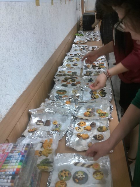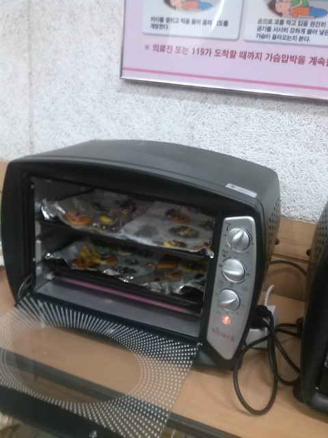 ▲완성된 쿠키는 요위 오븐에 8~10여분간 구우면 '짜잔' 알록달록한 수제쿠키가 완성이 되지요. 오븐안에 구워지는 쿠키냄새가 교실안을 채우자 아이들은 '언제 먹을수있어요?' 하며 선생님한테 쉴새없이 질문을 하네요. 선생님은 '조금만 기다리자. 기다리다 먹으면 더 맛있거든' 하면서 식은땀을 흘리시네요.