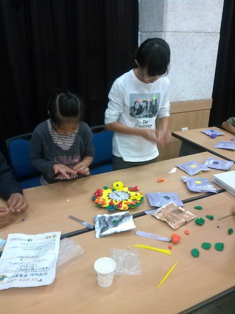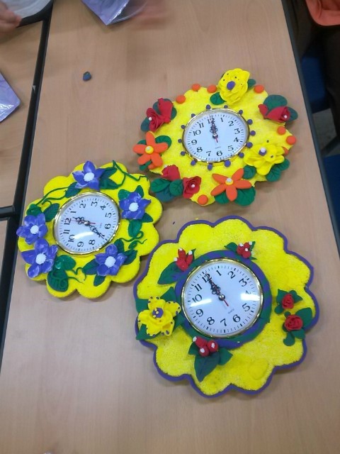 아빠와 함께 시계 반제에 폼클레를 얇게 펴서 꽃이랑 넝쿨도 만들어 예쁜정원도 만들었답니다.