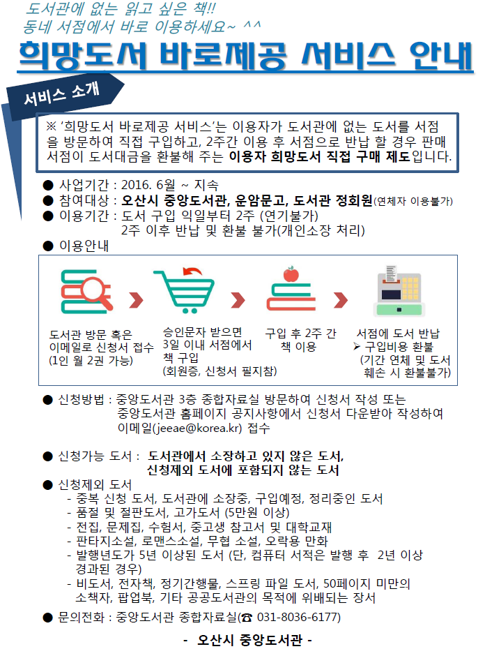 희망도서 신청을 이메일로 하고, 오산의 운암문고에서 직접 받는 거죠~~^^