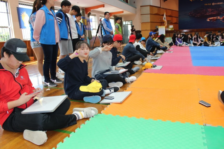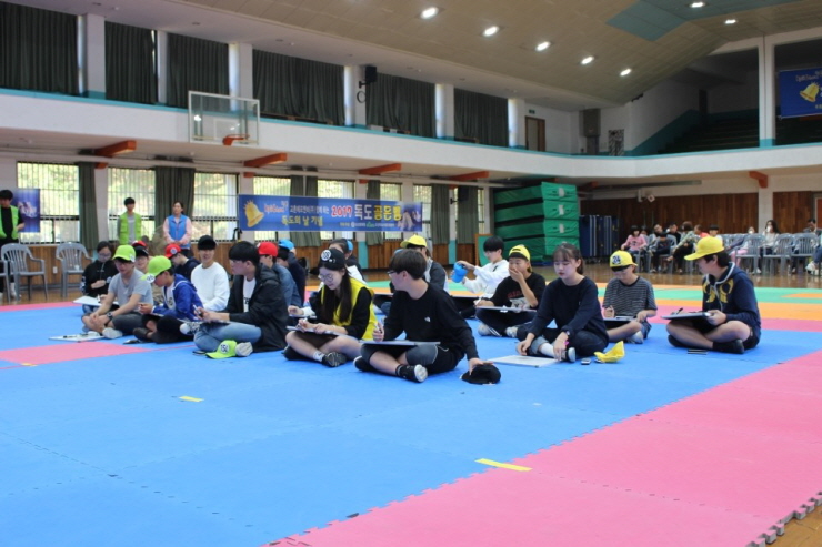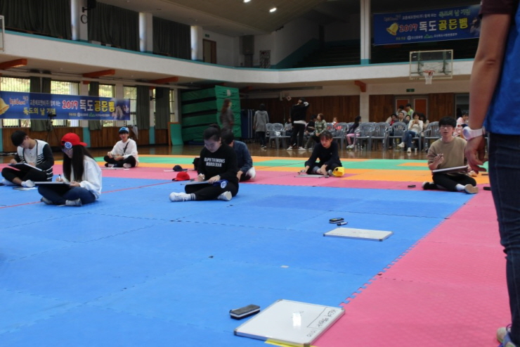 ▲ 최후의 1인이 되기 위해서 집중, 또 집중하는 학생들 우리 청소년들이 독도를 알기 위해 행사에 참여한 것 자체가 자랑스러웠다. 가슴 졸이며 문제가 나올 때마다 손에 땀을 쥐고 모두가 잘 해내기를 바랐다.