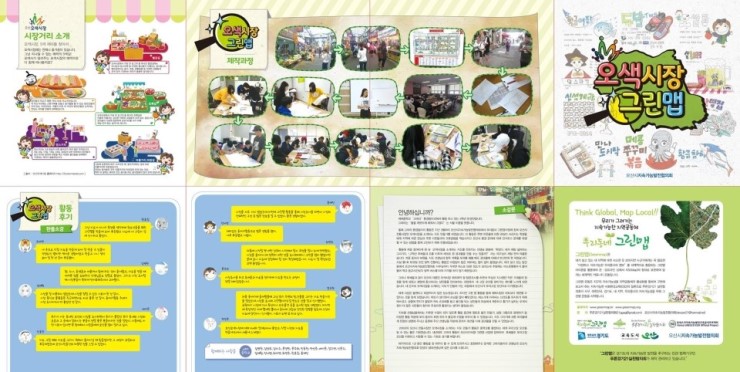 ▲ 그린맵 아이콘 샘플 예시 (출처 : 우리 동네 그린맵) 그린맵 운동은 1992년 뉴욕에서 시작되었으며, 푸른경기21실천협의회에서 2008년부터 도입해 경기도형 지속 가능성 운동인 '우리 동네 그린맵'으로 브랜드화 하였으며 지속 가능성 운동의 도구로 경기도 지역에 제안되었습니다. ▶우리 동네 그린맵 바로가기 http://www.greenmap.kr/main/main.php 2011년부터 진행된 공모사업을 통해 40여 개의 '우리동네 그린맵'이 제작되었으며, 올해 공모사업은 - 성남 '에코사이클', 축하합니다. 짝!짝!짝! 이에 오산시지속가능발전협의회(구.오산의제21)에서 2017년 그린맵 참가자를 모집한다고 합니다. 오산시지속가능발전협의회에서는 그동안 '놀이문화 그린맵', '우리 동네 119', '우리 동네 고목', '오색시장 그린맵'을 통해 4년여 동안 오산을 표현해 왔다고 합니다. 뜻깊은 활동에 참여해 보고 덤으로 봉사점수까지 얻어가세요. 저도 참여해 보고 싶지만 아쉽게도 대상이 오산시 관내 중학생으로 한정되어 있네요. 부럽습니다. 언제. 2017년 4월 ~ 12월(월 1회~2회) 토요일 09~12시 그린맵 활동을 통해 만들어진 오색시장 그린맵을 감상해 보세요. 그린맵 관련 관련 이미지는 김우현님의 페이스북에서 가져왔습니다.