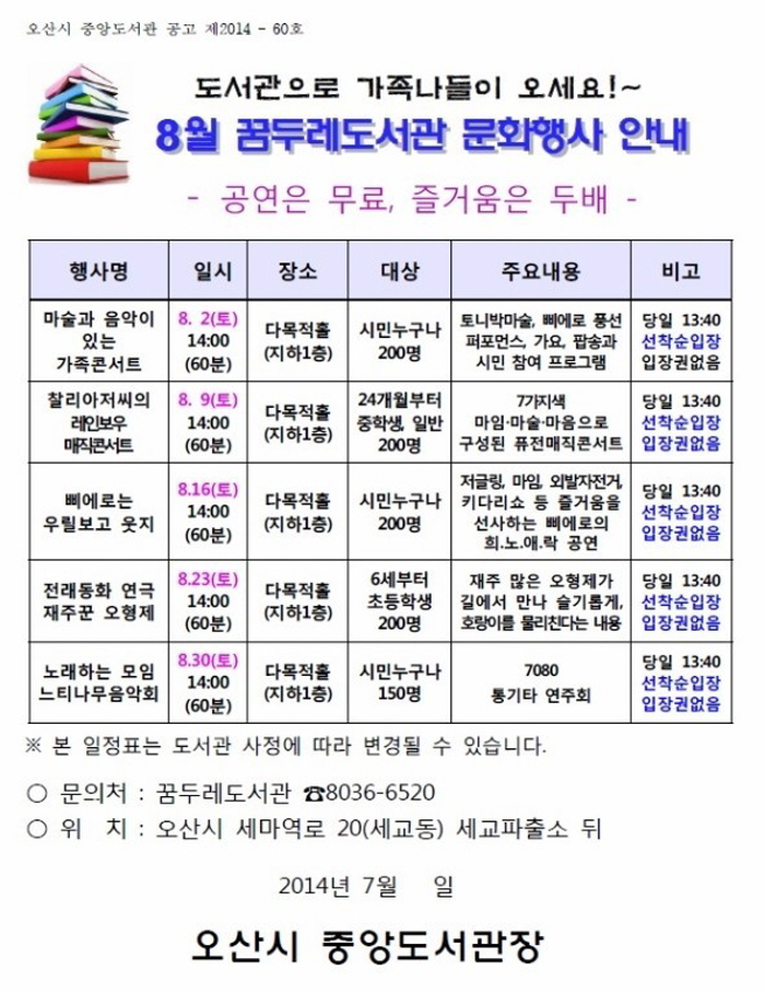멀리 나갈 필요없이 가까운 오산시도서관에서 엄마도 즐겁고 아이도 행복한 방학을 보내는 건 어떨지요??
