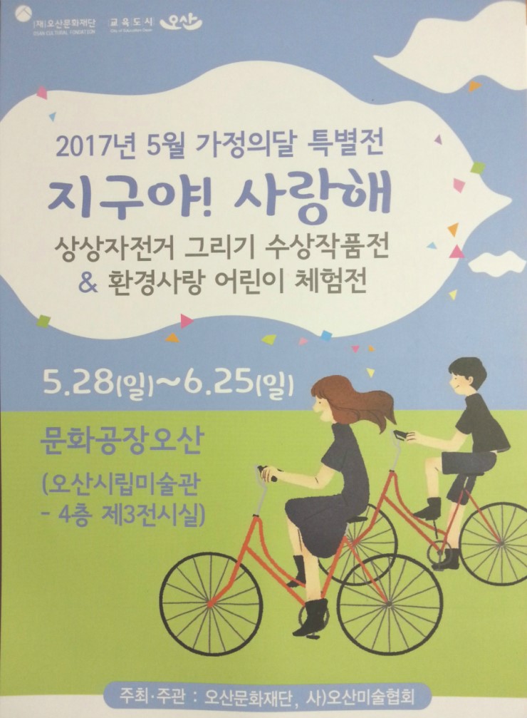 수상작은 문화공장오산 제3전시실에서 전시하며, 2017년 5월 가정의 달 특별전 <'지구야! 사랑해' 상상자전거 그리기 수상작품전 & 환경사랑 어린이 체험전>이 6월 25일까지 이어진다.